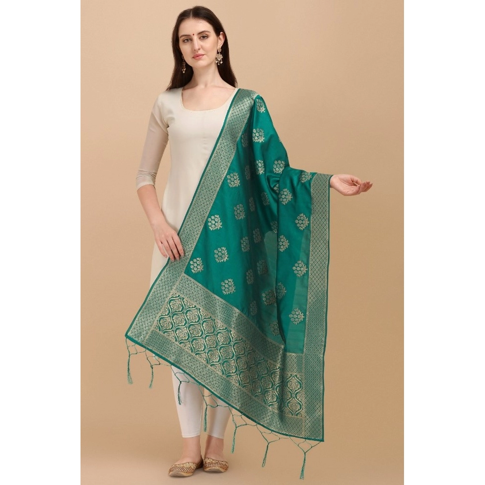 Women’s Silk Pure Zari weaving Duppatta (Green, Length: 2-2.3 Mtrs)