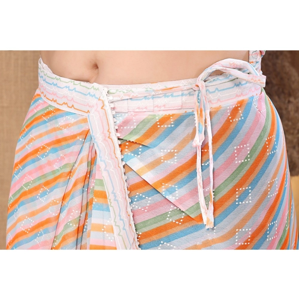 Women’s Small Lace Georgette Striped Ready-to-Wear Saree with Unstitched Blouse 5.5 Mtr