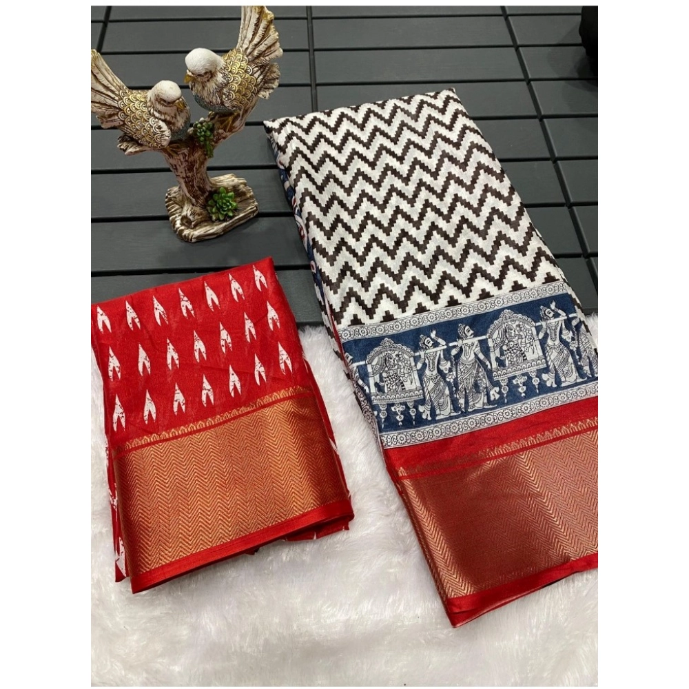 Women’s Soft Dola Cotton Kalamkari Printed Saree With Unstitched Blouse